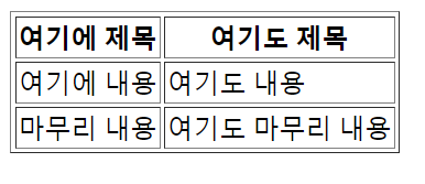 <th>여기에 제목</th>