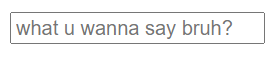 <input type="text" name="rname" placeholder="what u wanna say bruh?">